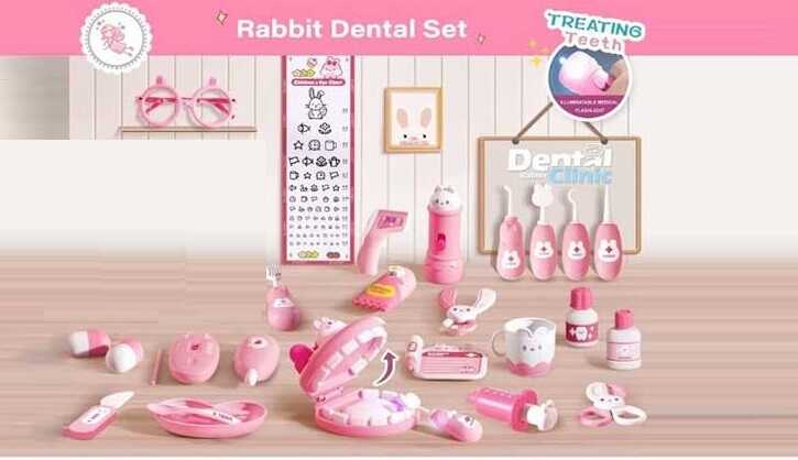 - Набір лікаря 6697 (32) 28 іграшок, медичний ліхтарик підсвічується, демонстраційна модель щелепи, шприц, термометр, окуляри, чашка, пігулки, у пакеті