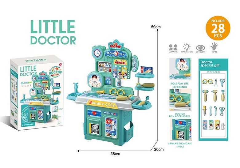 - Набір лікаря 922-217 (24) медичний центр, розмір: 38х20х50 см, окуляри, пінцет, ножиці, молоточок, дзеркало, затискач, отоскоп, дзеркало, ліки, пластир, наліпки, в коробці