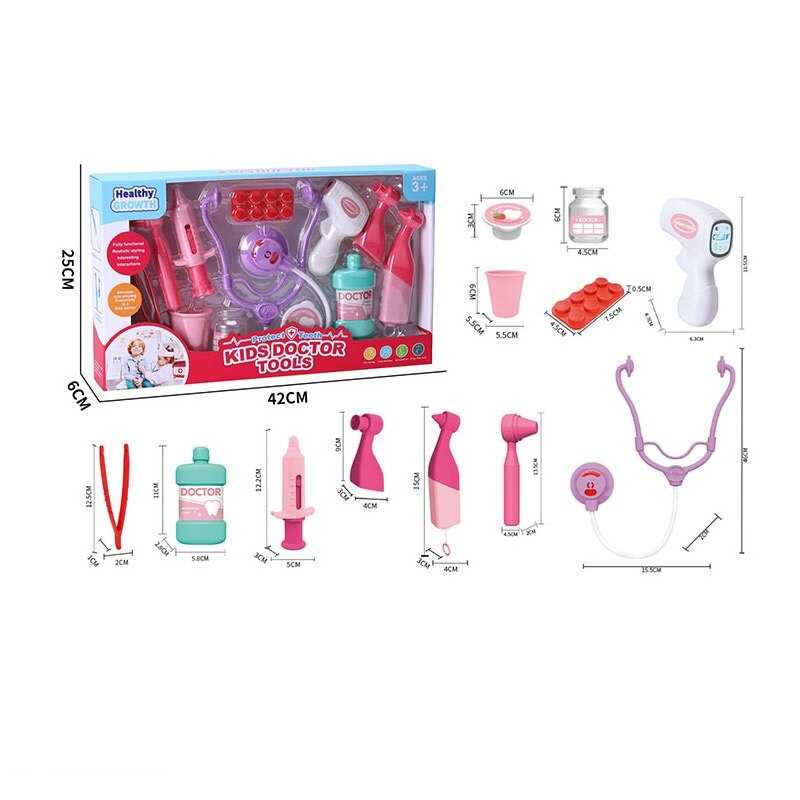 Набір лікаря A 82-2 (48/2) бормашина вібрує, заводний механізм, термометр, стетоскоп, пінцет, шприц, таблетки, баночки, в коробці