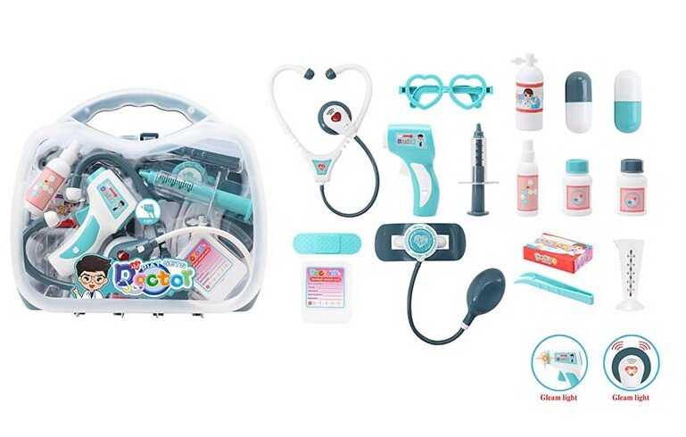 - Набір лікаря SD 169-273 B (36/2) звук, підсвічування, стетоскоп, термометр, прилад для вимірювання тиску, інструменти для огляду, аксесуари для гри, у валізі