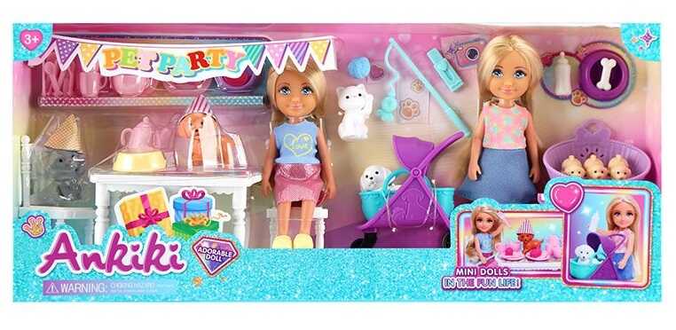 Набір ляльок 606120 (36) 2 ляльки, висота: 13 см, стіл, стілець, візочок, фігурки тварин, в коробці