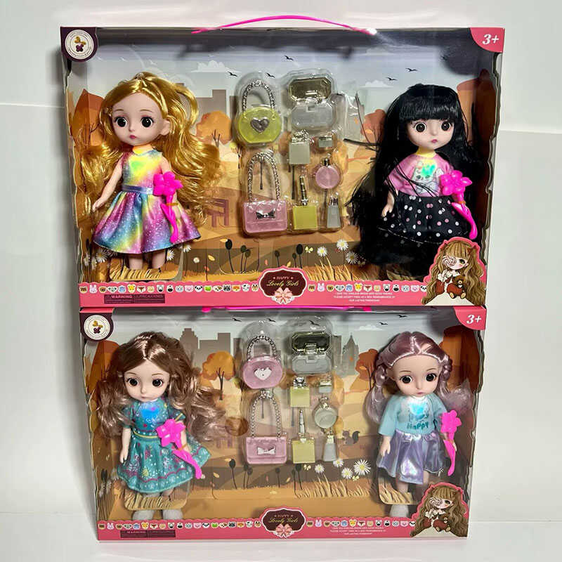 - Набір ляльок A 02 F (72/2) 2 види, 2 ляльки, висота 20 см, рухливі кінцівки та голова, знімний одяг та взуття, щітка для волосся, сумочки, парфуми, крем, в коробці