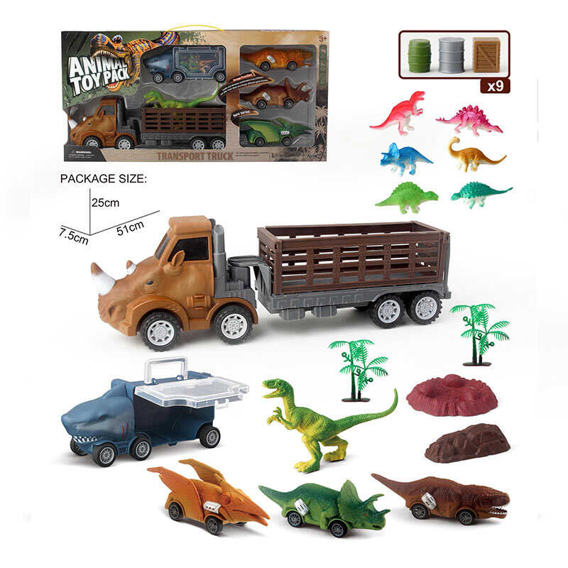 - Набір машин 158-132 (40/2) 5 машинок, 7 динозаврів, аксесуари, інерція, в коробці