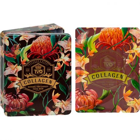 Набір тканинних масок 2в1 "Collagen" 10 шт у металевому боксі TVO-074. Кожна маска має два етапи: тканинна маска (36 г) глибоко зволожує, покращує пружність шкіри та насичує її активними компонентами; другий крок — крем (6 г) з колагеном, який підсилює ефект, живить та допомагає утримувати вологу. Металевий бокс зручний для зберігання та дарування. Маска в індивідуальній упаковці: 18×13 см. Розмір боксу: 19,5×15×4 см, коробка тримається з одного боку.