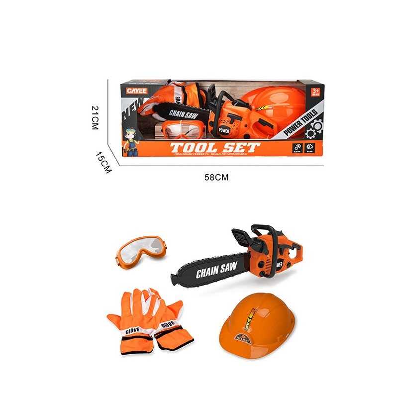 Набір інструментів KY 1068-108 C (12/2), звук, бензопила, каска, захисні окуляри, рукавички, в коробці
