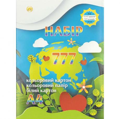 Набір одностороннього А4 "777" (21 аркуш) Білого+Кольорового Картону і Кольорового Паперу, ТМ Тетрада ТЕ248