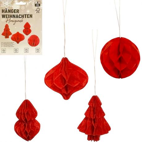 - Набір підвісних паперових новорічних прикрас 4шт "Червоні фігури" CG-1