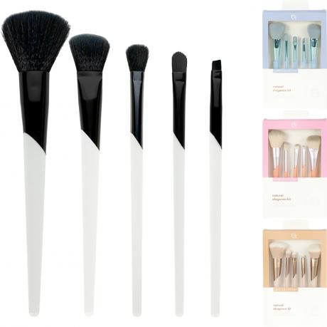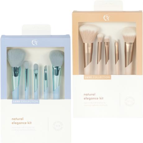 Набір кистей для макіяжу 5 шт «LUXE Collection» — практичний комплект для щоденного та професійного макіяжу. До набору входять кисті для тональних засобів, пудри, рум’ян, розтушовування тіней, консилера та підводки. М’який синтетичний ворс забезпечує рівномірне нанесення косметики без подразнення шкіри. Ергономічні ручки виготовлені з перероблених матеріалів і забезпечують точність та комфорт у роботі. Підходять для сухих і кремових текстур. Подарункова упаковка зручна для зберігання та перевезення. Розмір упаковки — 22×14×2,5 см.