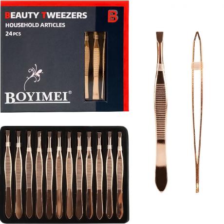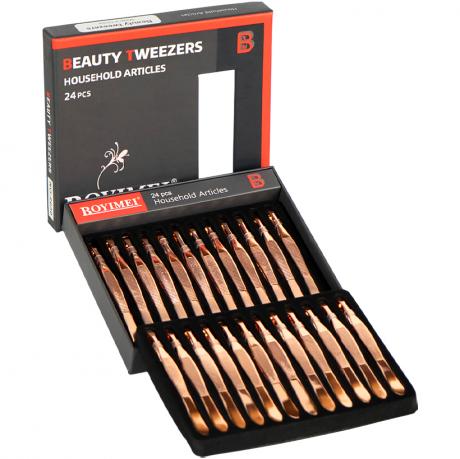Набір пінцетів 2030 складається з 24 штук довжиною 9 см, виготовлених з нержавіючої сталі. Інструменти стійкі до корозії, легко очищуються та підходять для точних робіт. Пінцети забезпечують надійне захоплення й комфорт у використанні, підходять для манікюру, косметичних процедур, а також побутового й професійного застосування. Поставляються у зручній коробці для зберігання та транспортування.