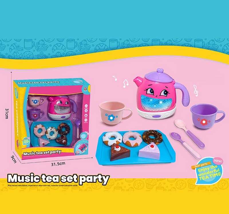 - Набір посуду 3220 C (36) чайник, підсвічування, звуки, мелодії, датчики руху, на батарейках, посуд, солодощі, в коробці