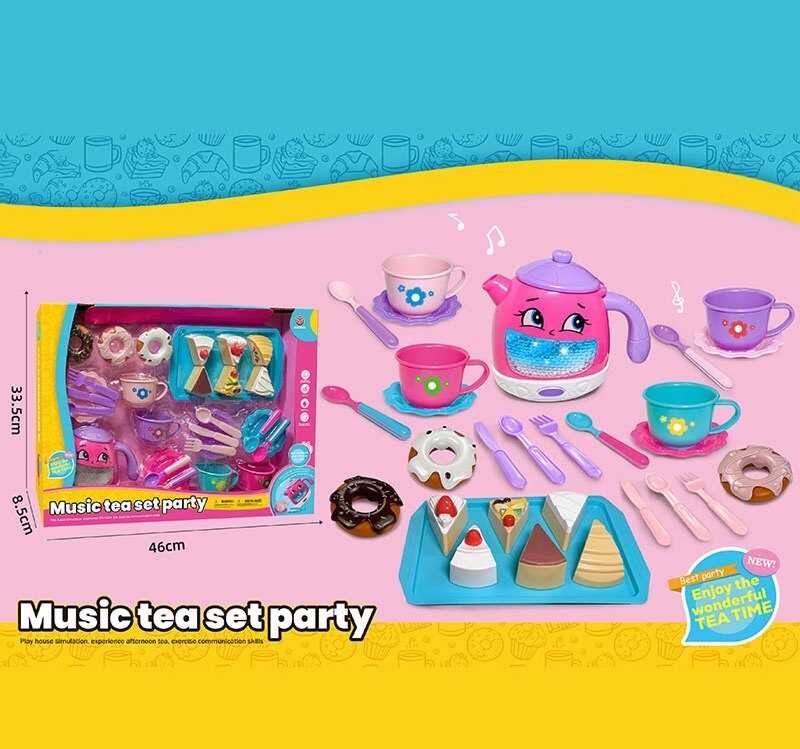 - Набір посуду 3221 B (30) чайник, підсвічування, звуки, мелодії, датчики руху, на батарейках, посуд, солодощі, в коробці