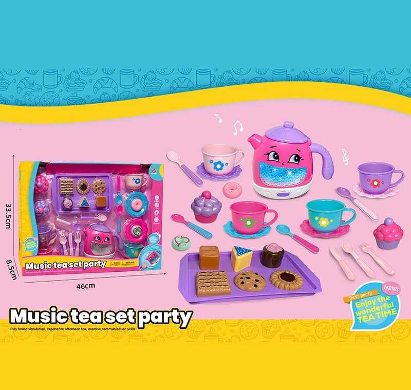 Набір посуду 3221 C (30) чайник, підсвічування, звуки, мелодії, датчики руху, на батарейках, посуд, солодощі, в коробці