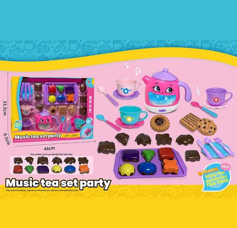 - Набір посуду 3222 D (30) чайник, підсвічування, звуки, мелодії, датчики руху, на батарейках, посуд, солодощі, в коробці