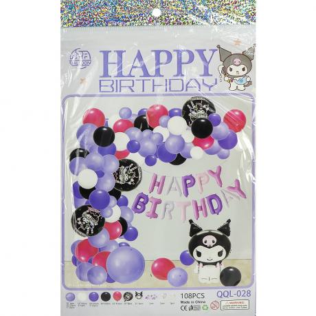Набір повітряних кульок для оформлення свята 108 шт, підходить для дня народження, дитячих подій та фотозон. У комплект входять кульки різних розмірів і типів, а також декоративні фігури та напис «Happy Birthday». Елементи легко поєднуються, створюючи об’ємну святкову гірлянду. Упаковка: 35×22 см.