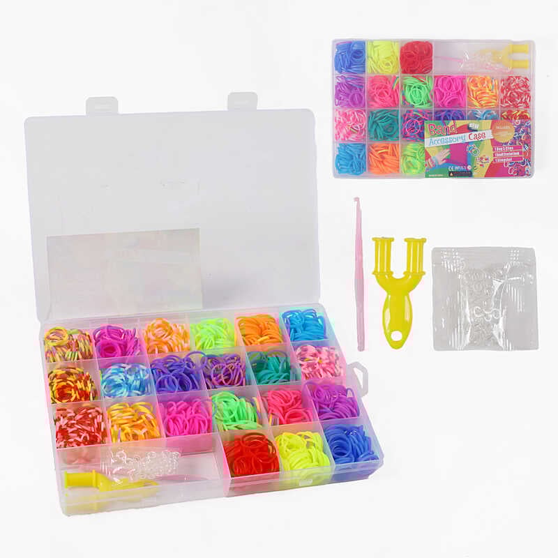 - Набір резиночок для плетіння C 74655 (160) 21 колір, пластикова фурнітура, рогатка, гачок, в боксі