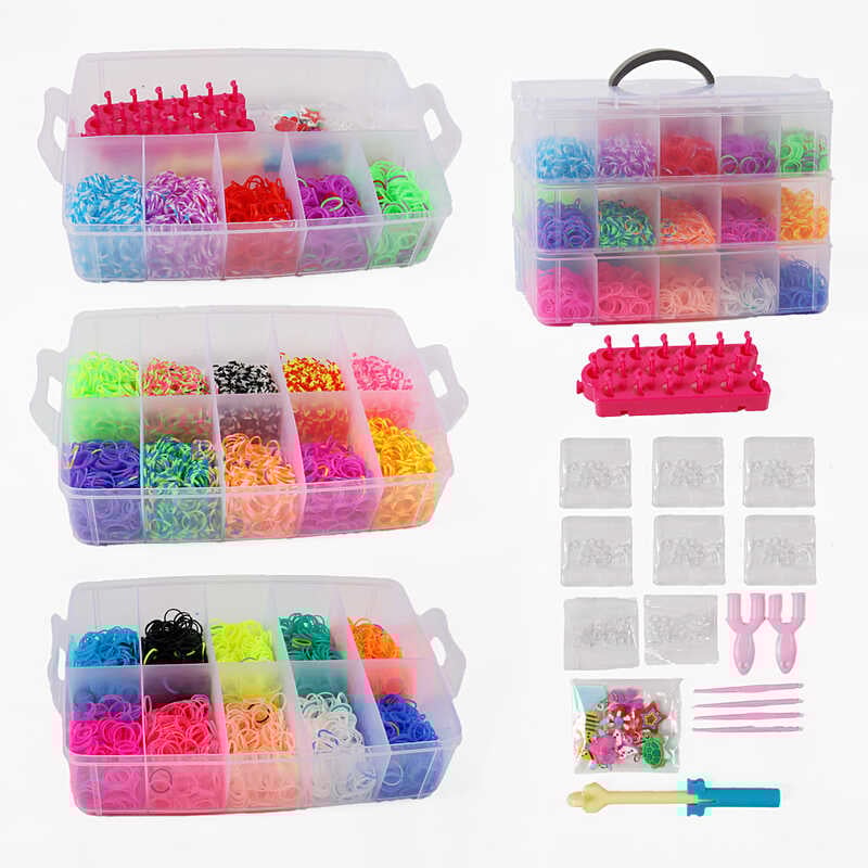 - Набір резиночок для плетіння C 74663 (24) 25 кольорів, пластикова фурнітура, гачок, верстат, рогатка, підвіски, в боксі