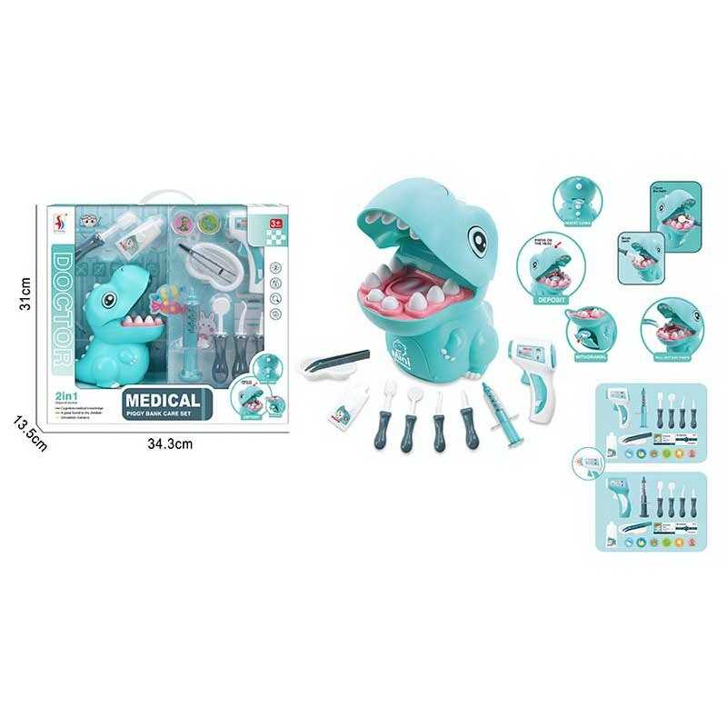 - Набір стоматолога SD 169-292 A (18/2) скарбничка, шприц, фігурка динозавра з рухомою щелепою, інструменти, зубна паста, щітка, щипці, термометр, підсвічування, в коробці