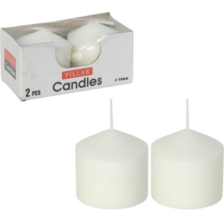 Інтер’єрна свічка циліндричної форми призначена для декоративного оформлення простору та створення затишної атмосфери. Діаметр свічки становить 50 мм, висота — 55 мм, що робить її зручною для використання у підсвічниках, декоративних композиціях і сервіруванні столів. Свічки мають рівну поверхню, акуратне виконання та стабільне горіння. Постачаються у наборі по 2 штуки в індивідуальній коробці розміром 5×5×10,5 см, що зручно для зберігання, транспортування й роздрібного продажу. Універсальний дизайн дозволяє поєднувати виріб з різними стилями інтер’єру. Практичний варіант для оптових закупівель товарів для декору та дому.