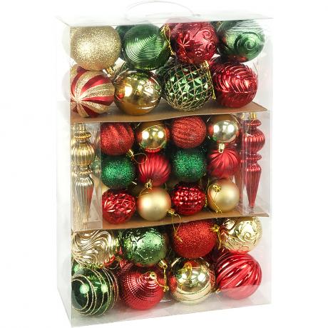 - Набір ялинкових прикрас 74шт Червоно-зелений з золотими акцентами 6279-1D