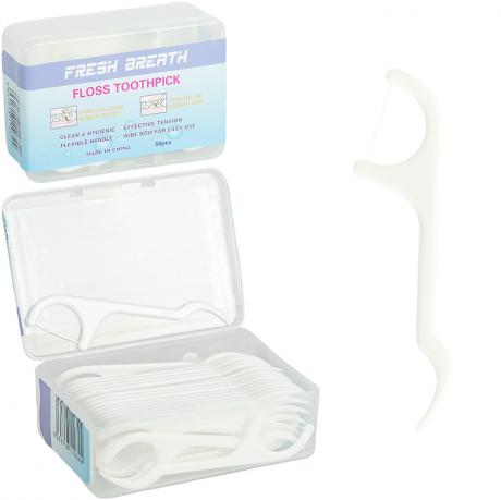 Набір зубних флосів TF501 призначений для ефективного очищення міжзубних проміжків і підтримання щоденної гігієни ротової порожнини. У комплект входять 50 флосів, які допомагають дбайливо видаляти залишки їжі та зубний наліт у важкодоступних місцях, знижуючи ризик карієсу та запалення ясен. Зручна форма флоса забезпечує комфортне використання та хороший контроль під час чищення. Набір упакований у компактний пластиковий контейнер розміром 8,5×6×3 см, що захищає вироби від забруднень і зручний для зберігання вдома, у сумці або під час подорожей. Формат оптимальний для щоденного використання, офісу та поїздок. Товар ідеально підходить для оптових інтернет-магазинів, аптек і торгових мереж.