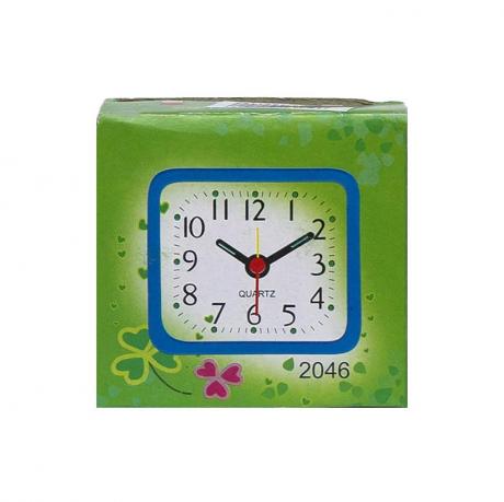 Настільний годинник-будильник 2046 — зручний аксесуар для дому, офісу чи подорожей. Завдяки компактним розмірам 5,8×5,5×2,7 см, годинник легко розмістити на будь-якій поверхні. Оснащений аналоговим циферблатом з чіткими поділками, працює від однієї батарейки типу АА (у комплект не входить). Поставляється в індивідуальному пакеті та коробці розміром 6,5×6×3,1 см. Вдалий вибір для гуртової торгівлі — популярна і практична модель у мініформаті.