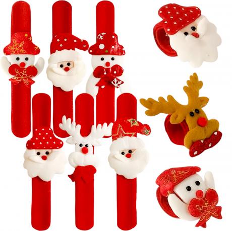М’який браслет-щолкунчик з фігуркою — оригінальний святковий аксесуар розміром 21×3 см. Усередині схована металева пластина, яка при легкому ударі об зап’ястя миттєво згортається навколо руки, перетворюючись на браслет. Зовні — м’яка тканинна обробка з декоративними елементами у вигляді Санти, сніговика, оленя та інших фігурок. Ідеально підходить як святковий сувенір, прикраса до свята або подарунок для дітей.