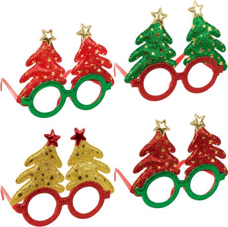 Новорічні окуляри без скелець із декоративними ялиночками, прикрашеними блискітками та зірочками. Яскравий глітерний декор створює святковий настрій і ефектний образ. Виготовлені з легкого пластику, зручно сидять і добре тримаються. Розмір: ширина 14 см, висота 13,5 см, діаметр оправи — 6 см. Ідеально підходять для вечірок, ранків та новорічних фотосесій.