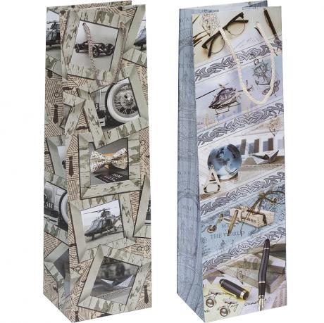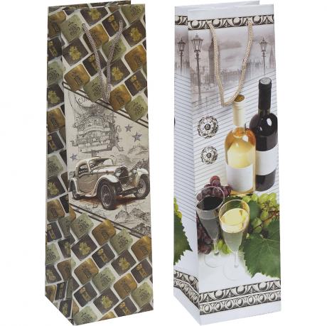 Пакет подарунковий "Пляшка" має розміри 12х39х9 см. Виконаний у глянцевому стилі з ручками-шнурками. У наборі 12 штук, кольори представлені в асортименті.