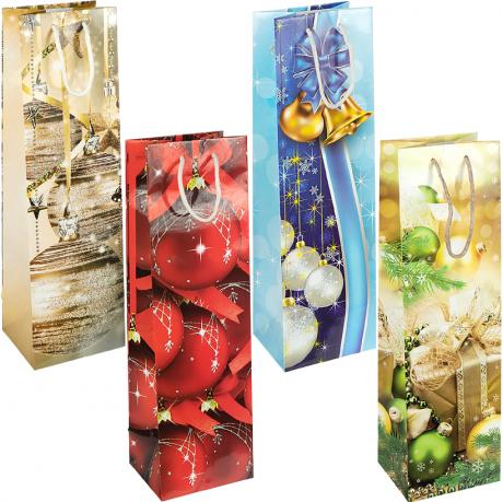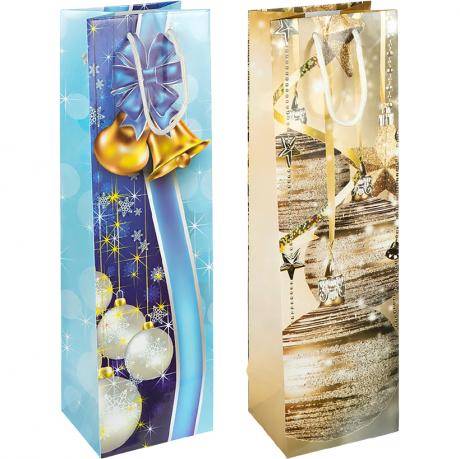 - Пакет кольоровий "Пляшка Новий рік" 12х36х8,5 см 7001