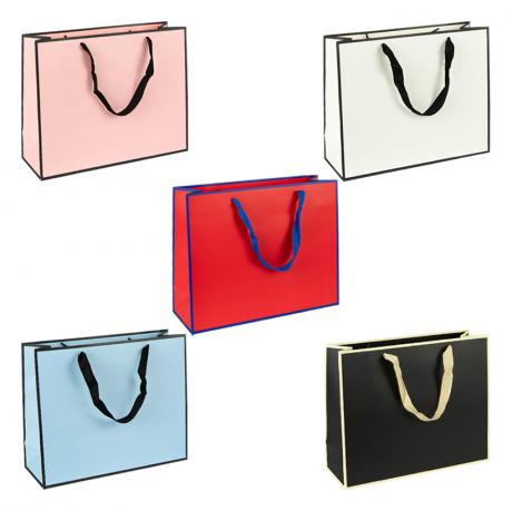 Подарунковий пакет однотонний горизонтального формату — універсальне рішення для акуратного пакування товарів. Висота — 26 см, ширина — 32 см, розмір дна — 11,5 см. Матеріал — щільний картон, ручка виконана з текстильної стрічки, по краю передбачена контрастна окантовка. Ціна вказана за 1 одиницю товару, продається упаковкою по 12 шт. Підходить для пакування косметики, аксесуарів, сувенірів і невеликих виробів. Стійке дно та зручні ручки забезпечують надійність під час перенесення. Товар вигідний для оптових магазинів і підходить для роздрібного продажу.