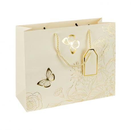 Пакет подарунковий 32х26х12 см горизонтальний з тисненням фольгою CREAM HL-1943