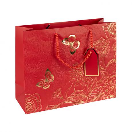 Пакет подарунковий 32х26х12 см горизонтальний з тисненням фольгою RED HL-1937