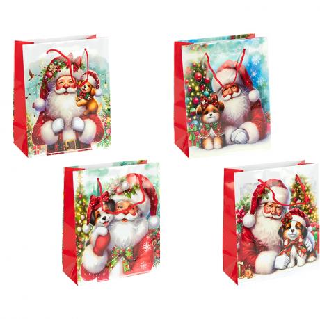 Подарунковий пакет новорічної серії розміром 18×21,5×8 см — стильне рішення для святкового пакування невеликих подарунків, солодощів і сувенірів. Виготовлений із щільного ламінованого паперу з глянцевим покриттям, стійким до вологи та пошкоджень. Яскравий дизайн із зимовими та новорічними мотивами створює атмосферу затишку та радості. Зручні шнуркові ручки забезпечують комфорт під час перенесення. В упаковці 12 штук (4 різні дизайни) — чудовий вибір для магазинів і оптових закупівель.