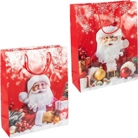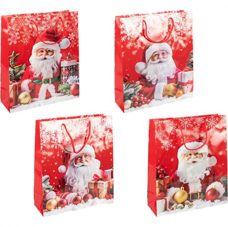 Подарунковий пакет новорічної серії розміром 26×32×10 см — універсальне рішення для святкового пакування. Виготовлений із щільного ламінованого паперу з глянцевим покриттям, стійким до вологи та пошкоджень. Яскравий дизайн із новорічними сюжетами створює атмосферу свята та чудово підходить для пакування солодощів, сувенірів і подарунків. Пакет має міцні шнуркові ручки, зручні для перенесення. В упаковці 12 штук (4 різні дизайни) — практичний варіант для роздрібного та оптового продажу.