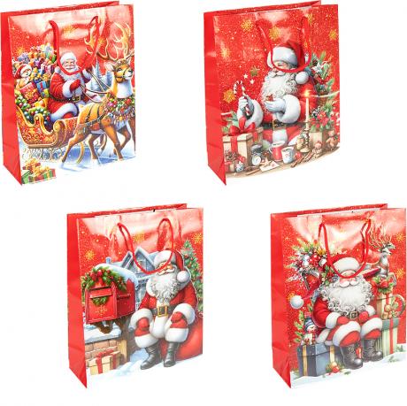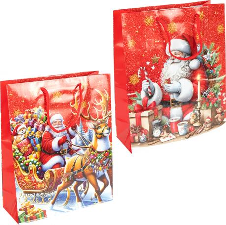 Подарунковий пакет новорічної серії розміром 26×32×10 см — універсальне рішення для святкового пакування. Виготовлений із щільного ламінованого паперу з глянцевим покриттям, стійким до вологи та пошкоджень. Яскравий дизайн із новорічними сюжетами створює атмосферу свята та чудово підходить для пакування солодощів, сувенірів і подарунків. Пакет має міцні шнуркові ручки, зручні для перенесення. В упаковці 12 штук (4 різні дизайни) — практичний варіант для роздрібного та оптового продажу.