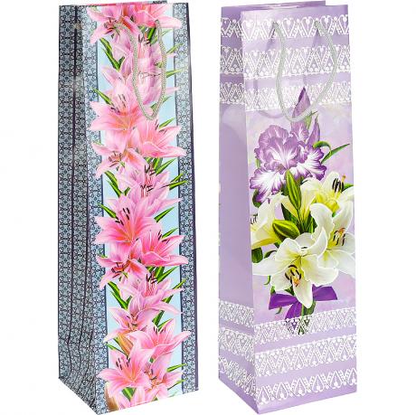 Пакет цветной "Бутылка-Цветочный микс" 12х39х9 см 7007