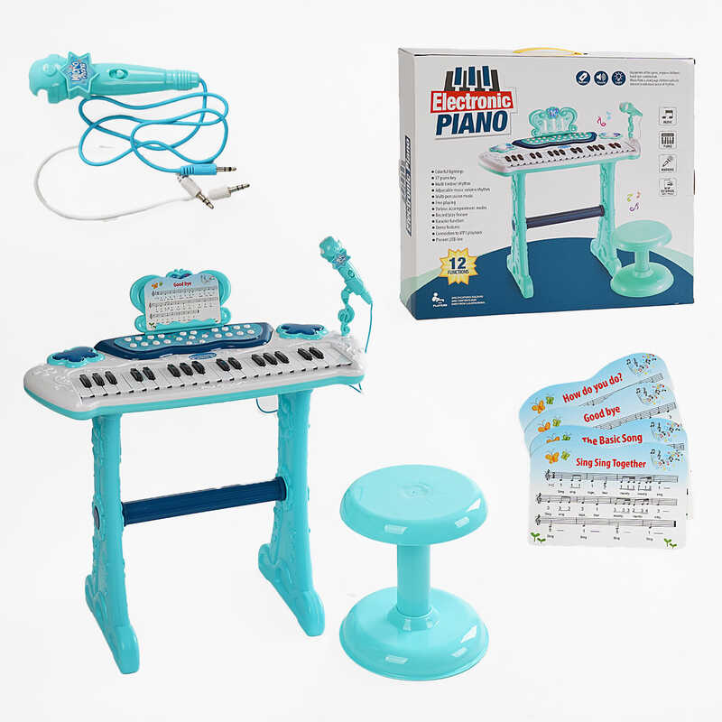 - Піаніно 883 F (10/2) 12 функцій, мікрофон, підсвічування, запис звуку, звукові ефекти, стілець, у коробці
