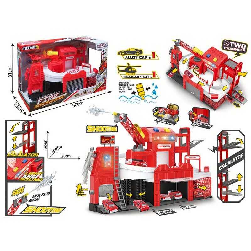 Парковка 660 S-26 (8/2) трек, механічний підіймач, підсвічування, звуки, на батарейках, рухомі елементи, металопластикова машинка та гелікоптер, механічно бризкає водою, в коробці