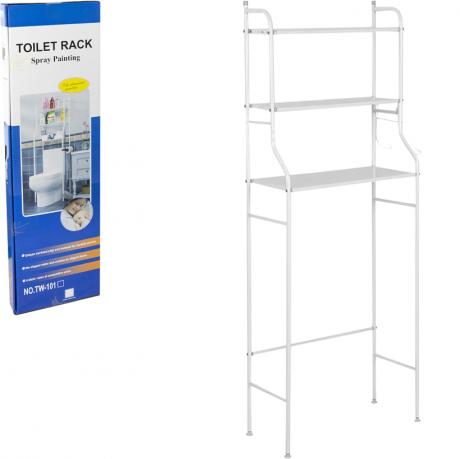 Стійка-органайзер для туалету — зручне рішення для ефективного використання простору у ванній кімнаті. Конструкція встановлюється над унітазом і дозволяє зручно зберігати побутову хімію, туалетний папір, серветки та інші аксесуари. Міцна металева рама забезпечує стійкість і надійність під час щоденного використання. Відкриті полиці гарантують швидкий доступ до необхідних речей, а компактний дизайн підходить як для малих санвузлів, так і для просторих ванних кімнат. Органайзер простий у збиранні та догляді, підходить для дому й комерційного використання.
