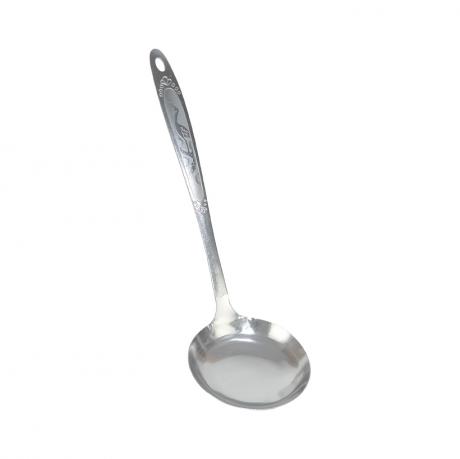 Металевий половник довжиною 32 см призначений для зручної та охайної роздачі перших страв і соусів у професійних закладах та в побуті. Виготовлений із міцного металу, стійкого до високих температур, вологи й інтенсивного використання, що гарантує тривалий термін служби. Робоча частина діаметром 9,5 см підходить для порційної подачі супів, бульйонів, підлив, соусів і гарячих напоїв. Подовжена ручка забезпечує безпечну роботу з гарячим посудом. Класичний дизайн «Срібний птах» робить половник універсальним для закладів HoReCa, їдалень і кейтерингу. Захисна упаковка — пакет на робочій частині — зручна для зберігання, транспортування та оптового продажу. Надійний вибір кухонного інвентарю.