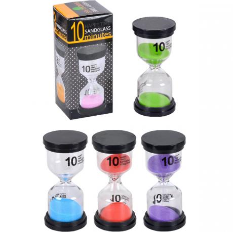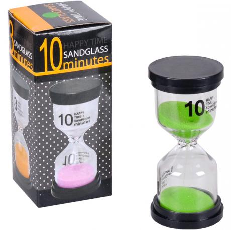 Пісочний годинник на 10 хвилин призначений для відліку часу та може використовуватися під час приготування їжі, навчання, ігор або контролю коротких інтервалів. Висота годинника — 10 см, діаметр — 4,5 см, діаметр горловини — 1 см. Корпус виготовлений із прозорого скла, верхня та нижня частини виконані у вигляді пластикових основ, які забезпечують стійкість конструкції. Усередині знаходиться декоративний блискучий пісок, що плавно пересипається через вузьку горловину. Компактний розмір дозволяє зручно розмістити годинник на робочому столі, кухні або полиці. Постачається в індивідуальній коробці розміром 11×5×5 см. Ціна вказана за 1 одиницю товару. Товар вигідний для оптових магазинів і підходить для роздрібного продажу.