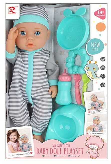 - Пупс 6332 (24) висота - 35 см, закриваються очі, ходить на горщик, знімний одяг, пляшечка, виделка, ложка, тарілочка, іграшка, горщик, в коробці