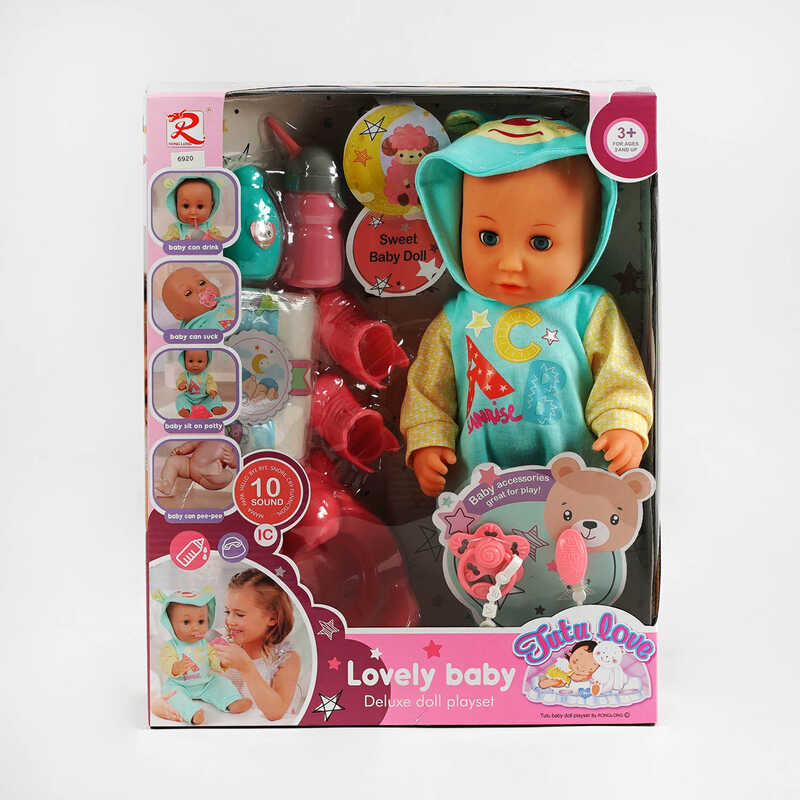 - Пупс 6920 (12) п’є з пляшечки, ходить у горщик, закриває очі, аксесуари, музичний чіп, висота 36 см, в коробці