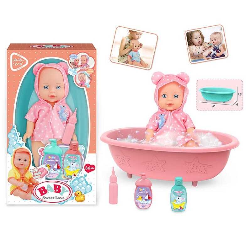 - Пупс 7933 C-2 (48) висота 26 см, знімний одяг, ванна довжиною 32 см, 2 баночки з гелями для душу, пляшечка, в коробці
