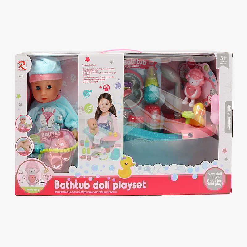- Пупс 8611 (6) висота 30 см, гумова голова, п’є, ходить на горщик, світло, мелодія, ванна довжиною 40 см, помпова подача води, пляшечка, горщик, качечка, в коробці