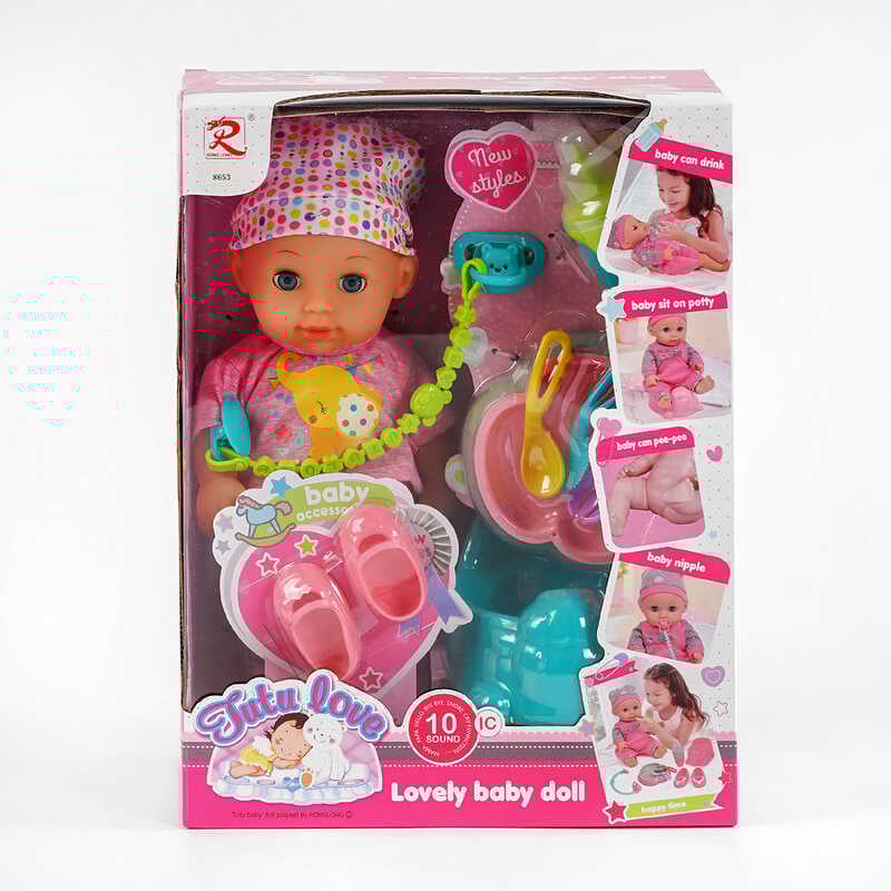 - Пупс 8653 (18) їсть, ходить в туалет, каже мама, тато, видає звуки, аксесуари, в коробці