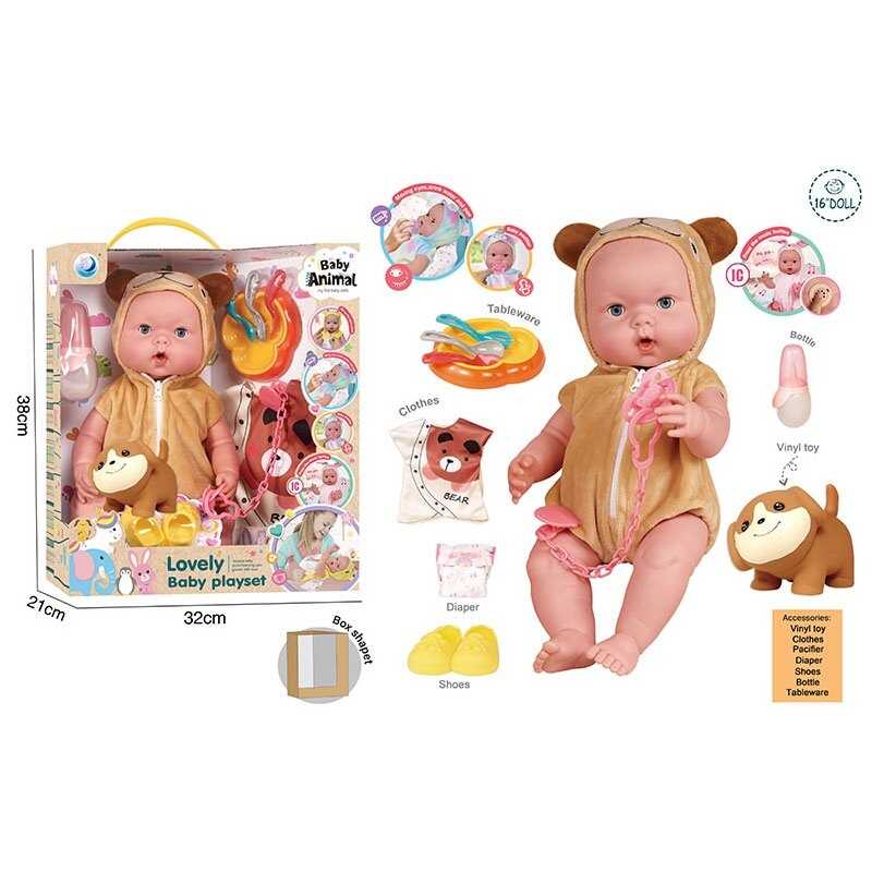 - Пупс DH 2377 A (12/2) висота: 39 см, гумова іграшка, музичний чіп, закриває очі, знімний одяг, пустушка, взуття, підгузок, ходить в туалет, пляшечка, тарілочка, ложечки, в коробці