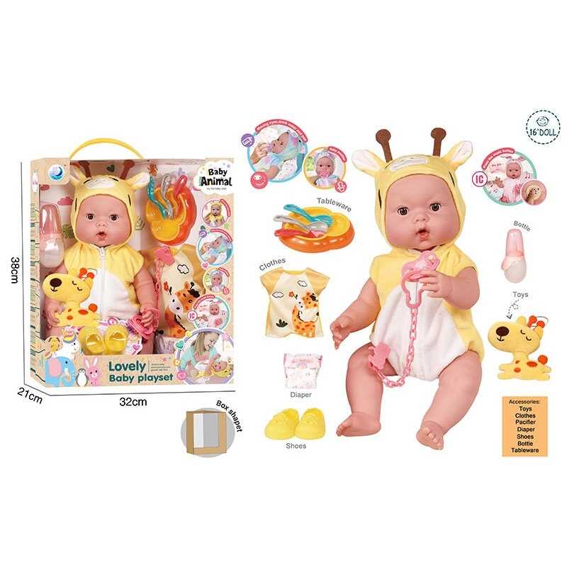 - Пупс DH 2377 B (12/2) висота: 39 см, музичний чіп, закриває очі, знімний одяг, пустушка, взуття, підгузок, ходить в туалет, пляшечка, тарілочка, ложечки, в коробці