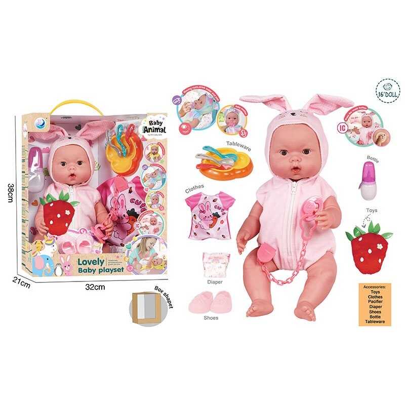 Пупс DH 2377 D (12/2) висота: 39 см, іграшка, музичний чіп, закриває очі, знімний одяг, пустушка, взуття, підгузок, ходить в туалет, пляшечка, тарілочка, ложечки, в коробці