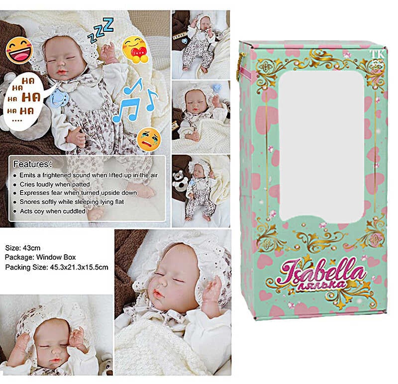 Пупс QM 24007 A (12) "TK Group", функціональний, датчик руху, звуки: сміх, плач, засинає, висота: 42 см, гумовий, озвучені репліки англ. мовою, аксесуари, в коробці